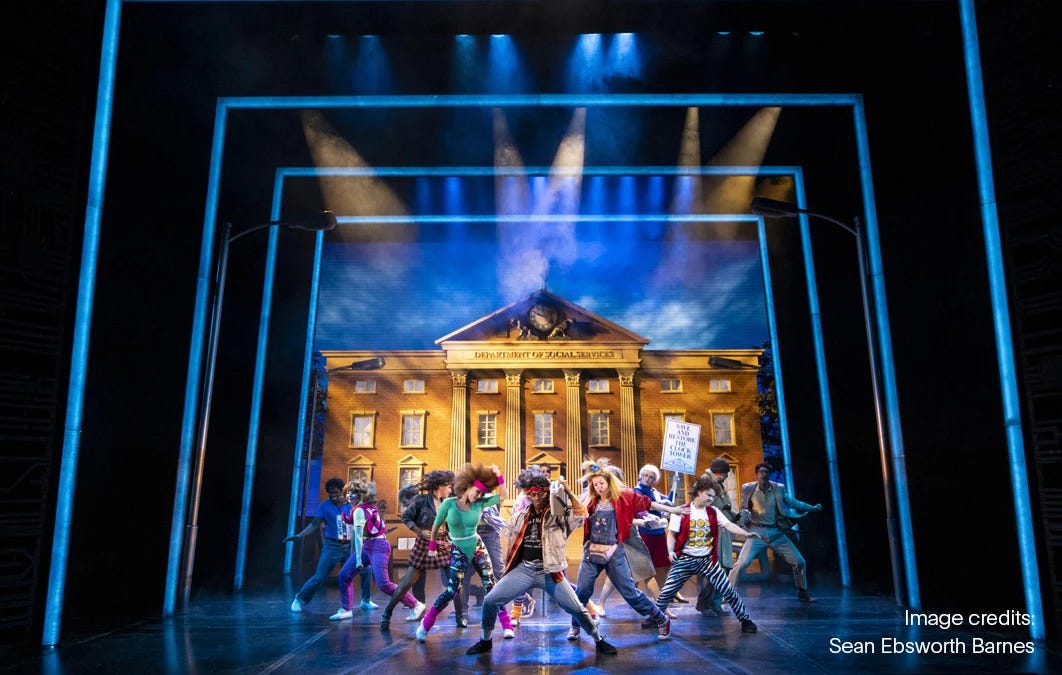 And finally, I would be remiss not to mention the music...which I believe is unfortunately the weakest part of the show. While the cast is comprised of talented singers and dancers and the songs themselves are fun in the moment, there isn't a single "ear worm" in the entire play. Just a whole lot of ballads and ensemble numbers that blend into each other and rarely actually reveal anything about the characters or advance the plot. I honestly found myself wishing that this was not a musical by the second act because it felt like the music was obstructing the story rather than enhancing it - except when music that played in the original movie was performed, which is pretty damning evidence that the problem all along was in the original songs rather than the solid performances.