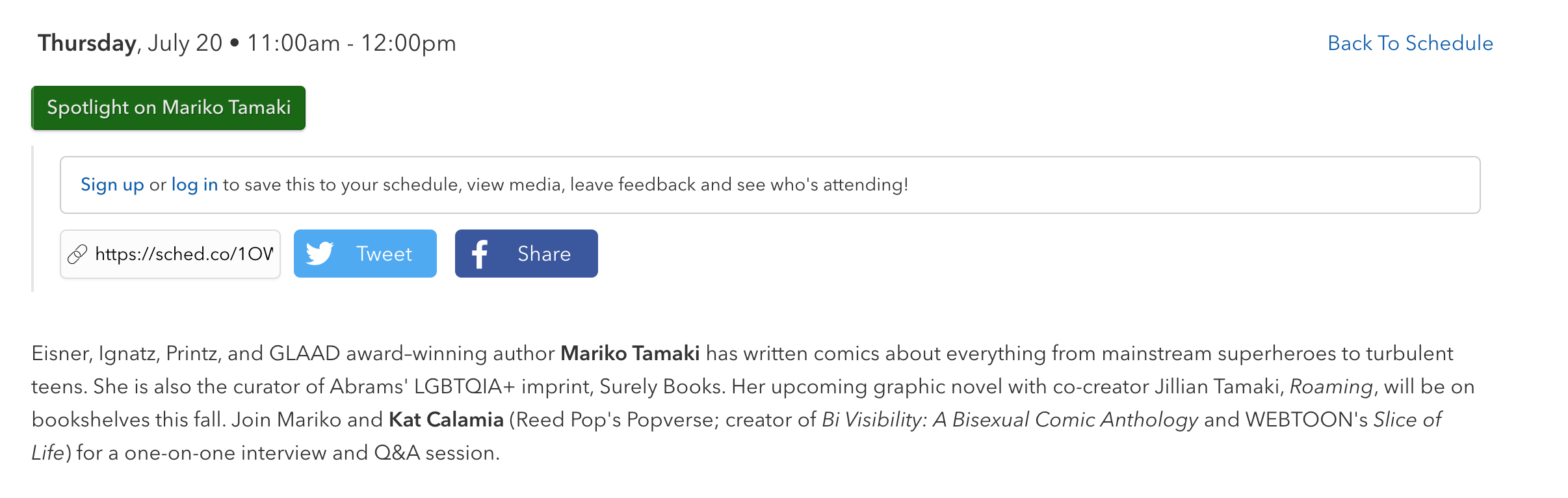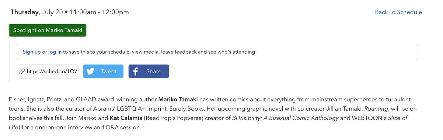 11-12: Moderating a Spotlight on Mariko Tamaki Room 32AB