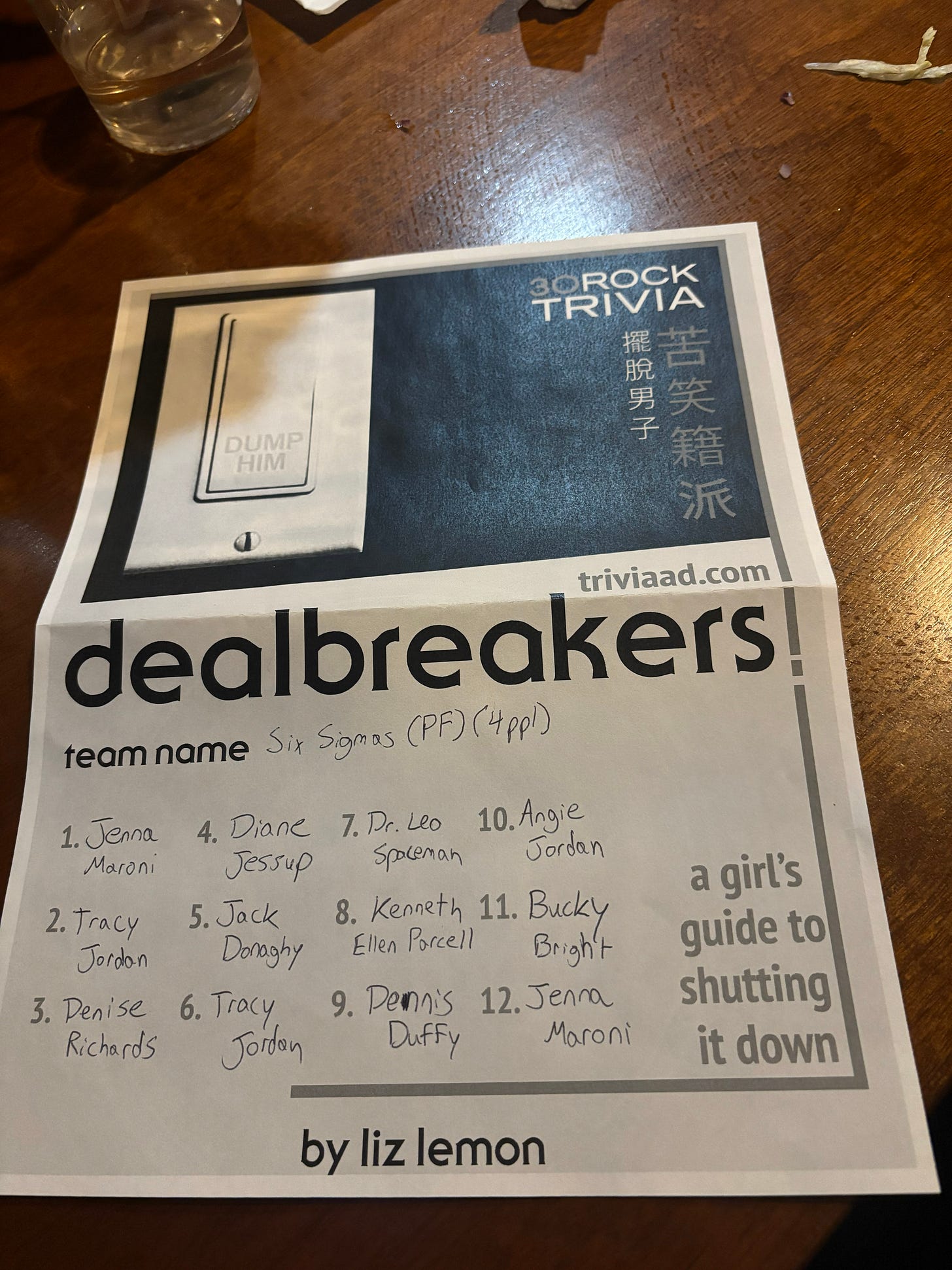My brother, Dan, joined the team this time alongside myself, our sister Marianne, and our friend T. We’ve been hardcore studying 30 Rock for the last few weeks in anticipation of this night.