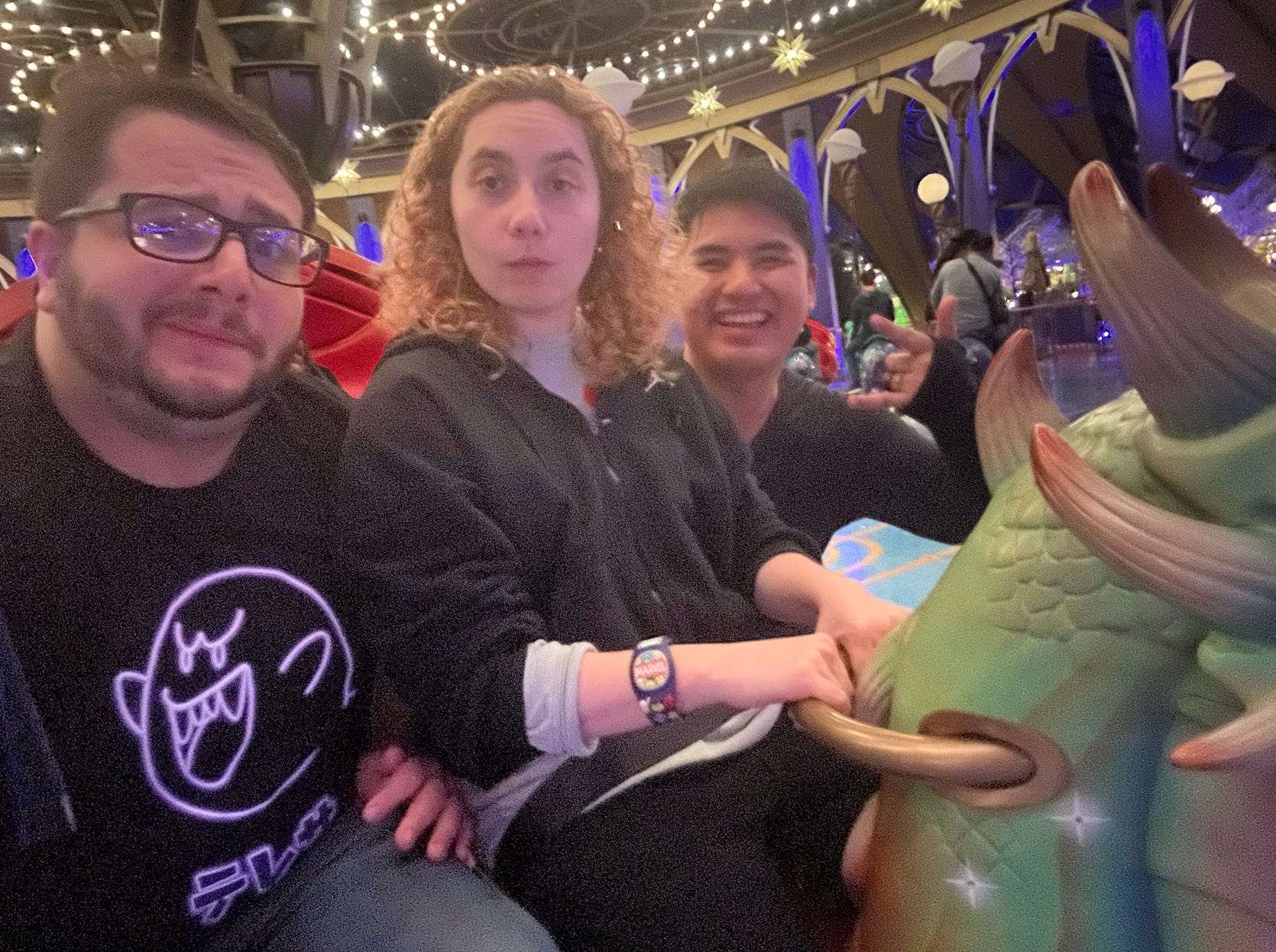 We told you we went on EVERY ride, which includes this theme park classic. Constellation Carousel is simply…a carousel, but a well-themed one. It’s placed in the middle of the park so when you go around you see the opening to every section of Epic Universe, which is a cool view (especially at night).