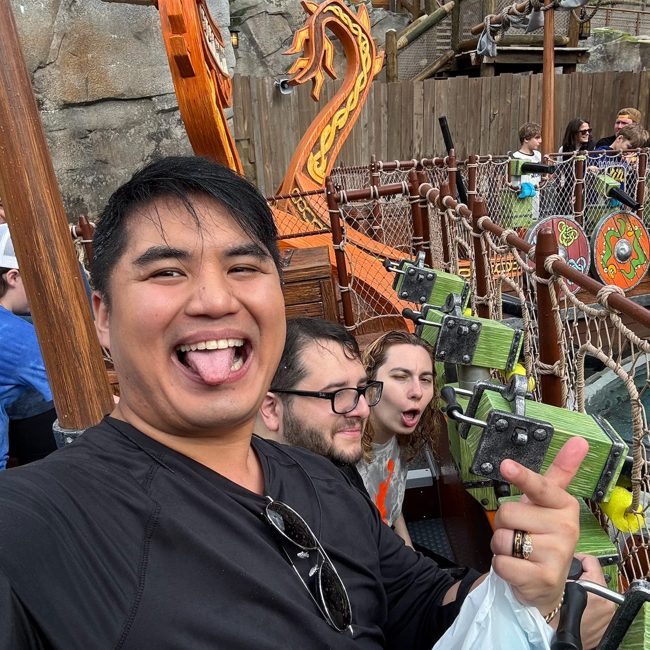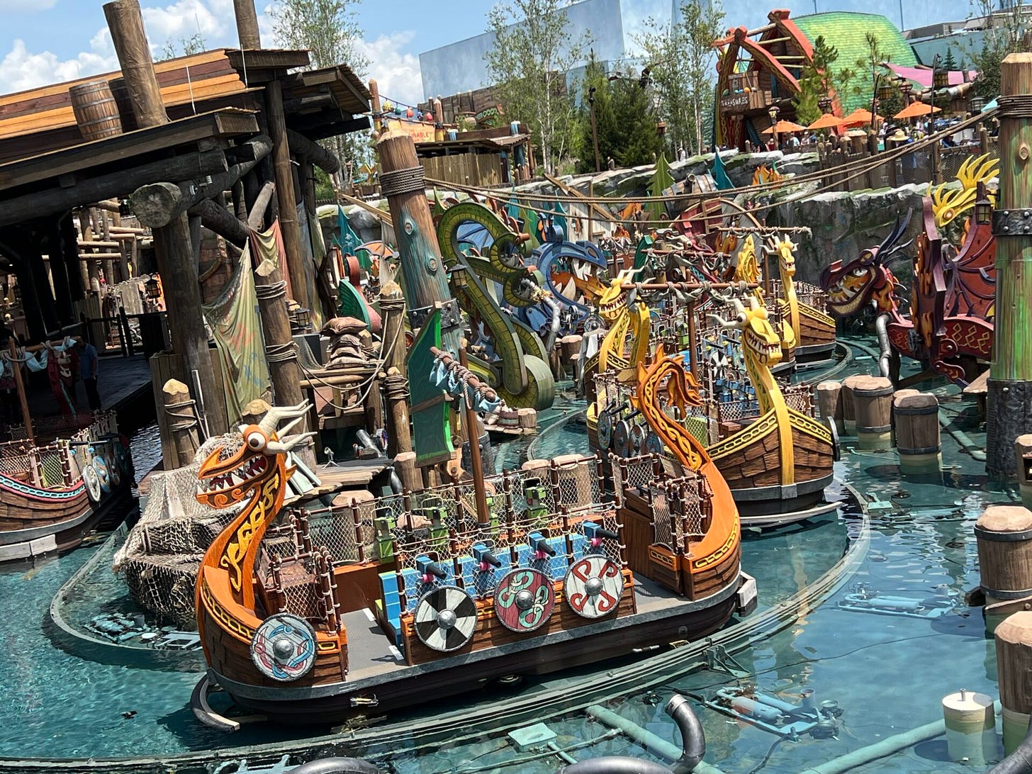 Warning: you will get WET! This was the first ride we went on, and we were not expecting to get as drenched as we did. It’s your classic “Water Gun Boat Ride” that takes rides across a short water track where you can shoot at different targets (themed after the training courses from the HTTYD movies)…AND you can shoot at riders in other boats!